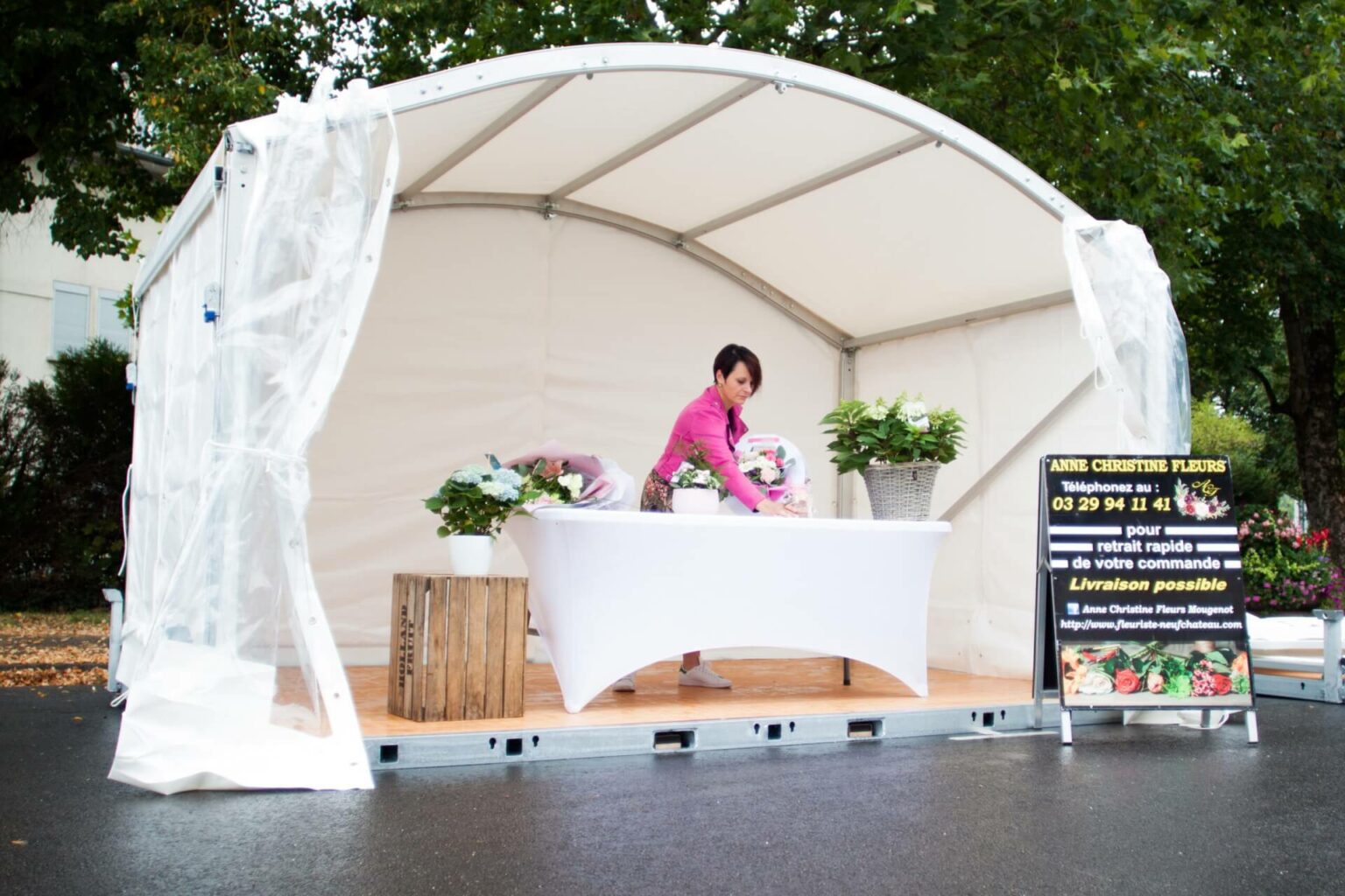 Je nach Bedarf wird die Einheit mit Planen oder Holzverschalung geliefert. Der Stand-Up ist speziell auf einer selbstgewichteten