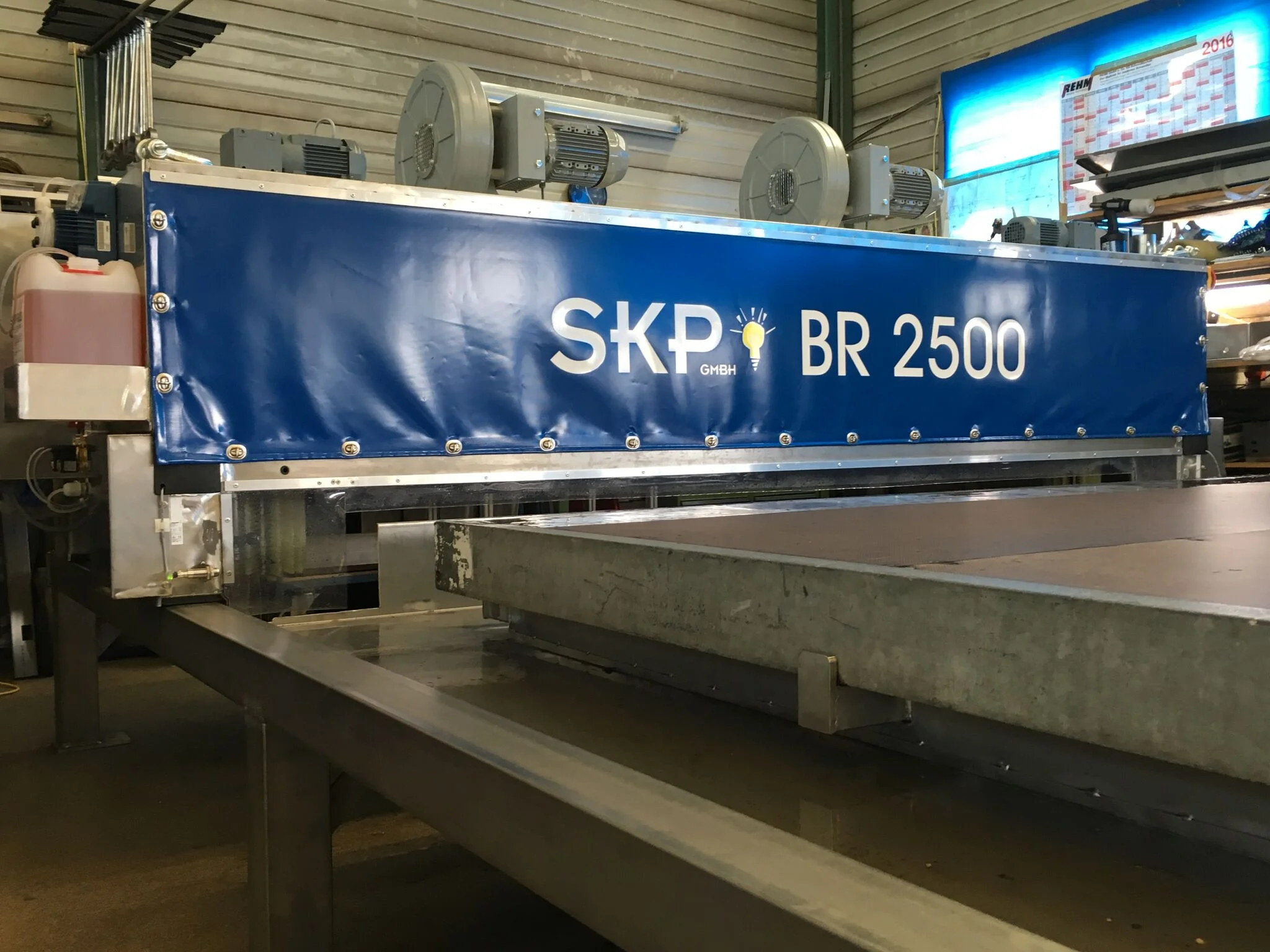 Die SKP GmbH hat eine innovative Bodenwaschanlage für große Platten entwickelt. Die neue BR 2500, die speziell für den belgischen Zeltvermieter Tenten Vannieuwenhuyze gefertigt wurde, ist die erste ihrer Art. Mit einer Breite von 3,2 Metern und einer Länge von zehn Metern ist die Anlage für Platten mit den Abmessungen von 2,5 x 5 Metern konzipiert. Die BR 2500 stellt eine Weiterentwicklung der erfolgreichen BR 1200 dar und bietet eine effiziente Lösung für die Reinigung von Großflächenplatten.